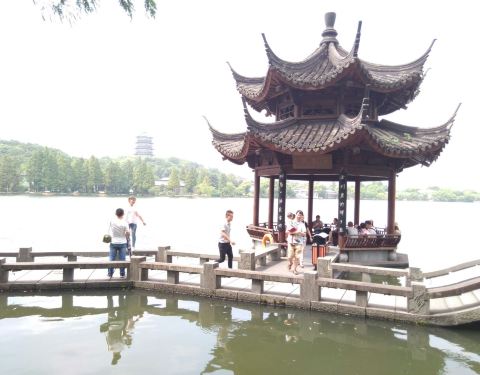 ...,这里背靠雷峰塔,著名的雷峰夕照就是在这取景的,风景很美,经常有新人在这拍婚纱照,非常值得一去