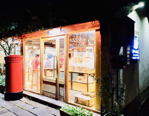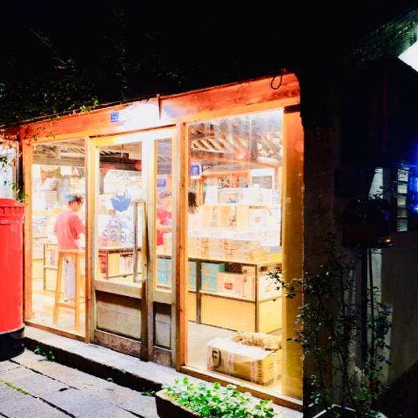 #猫的天空之城(南浔古镇店) 地址:南西街71-7号 位于南浔古镇景区内的这家书店,总体面积还是不小的。大约有3,4个门面的长度,井深尚可。书店内除了通常看到的邮递明信片的专栏之处,还有不小的阅读空间。其次一些小清新的文具用品琳琅满目,可圈可点。 书店门口有一只大大的红色邮筒,很引人注目,其次店招下摆放了一张长凳,迎来很多美女们入座自拍,好不快乐。 夜晚时分,景区内的参观店基本都关门了,但商店灯火明亮,此时景区已经不收门票了,所以来到这里,静心坐下看看书也是不错的选择。 猫的天空以推出“寄给未来”的营业模式,一度是很热门的,很受年轻人的青睐,虽然当前各种网红书店如雨后春笋般的出现,猫的天空还是以他的特色,独善其身,很不容易的。