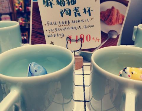 没有猫,它是一家南浔古镇上的一家概念书店,很小资很典雅,推门进去满眼都是书籍、明信片、手绘地图、陶瓷杯子,漂亮的小挂件、小饰品也很有味道,靠窗放着白色的桌子和座椅,