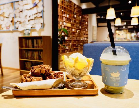 这是一家全国连锁的书店,目前停靠的站点还不是很多,但是能说的出口的古镇貌似都有了,比如苏州、周庄、杭州、丽江等等,这一站是南浔站。 他的存在已经很久了,15年去这里的时候这家店就开的非常红火了,现在依旧~ •坐标:南浔镇西南街71-1号 •交通:距离马路算是很近了,在一个检票口附近 •特点:文创店,最大的特色大概是写给未来的你和朋友 可以拿一本你想看的书,坐下来点一杯饮料,然后坐下来就是半天 每一个桌上都有留言本,你可以在上面写下你想说的话,因为时间久了,这里的留言本已经厚厚的好多本了,如果不想写的,可以翻看前面的人留下来的只字片语,也是很有趣的一个过程。 除了明信片、写信、贺卡、还有好多文创周边,都很有趣,还可以买一个笔记本自己做手作,这种方式就很文青。 饮料也还不错 抹茶摩卡 巧克力松饼餐 小姐姐很用心的给你装点好送上桌,你可以慢慢等来~ 给你的等餐牌也很可爱,只是这是一只少了耳朵的小猫咪 没想到他们家的餐点还蛮大的,松饼也是现烤的,味道还不错,喜欢冰激凌水果盘,橙子很好吃,饮料也不错。