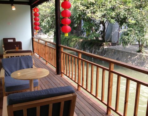 南浔古镇景区内一个很有小资情调的小店,在广惠宫斜对面。门口有红色的邮筒和蓝色的长椅,临河而建,极富情…