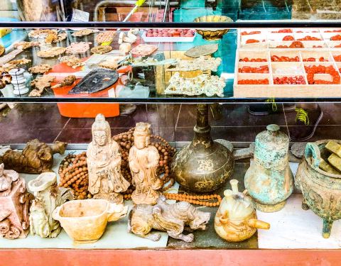 各种古玩,文房用品,当然真假难辨,鱼龙混杂,全靠一双慧眼了