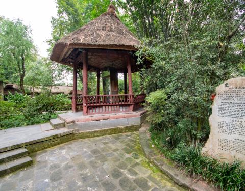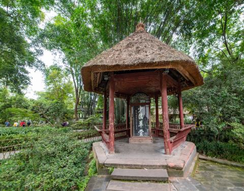 成都的杜甫草堂里的一个小景点叫少陵碑亭,其茅草所盖的亭子象征着当年杜甫旧居时的茅草屋,是用一种特别的方式来纪念诗圣杜甫的。