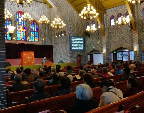 到二医院检查身体,中途没有事,出来闲逛。刚好看到这里门口有很多人,正好开放就进去看看。以前就是圣诞节来玩过,很喜欢听哈利路亚。一楼一个房间有很多阿姨和大叔在跟着一个老师歌唱,然后有阿姨告诉我们可以去二楼看,每周六上午,周日全天都有活动。我们来到二楼看到一个老师在带着一楼大厅和二楼的人唱诗,受到氛围的感染,我也跟着他们唱了一会,能感受到心灵的平静。观察了一下,里面以50岁以上的人居多,觉得这样挺好的,比跳广场舞强多了,以后老了我也可以来。