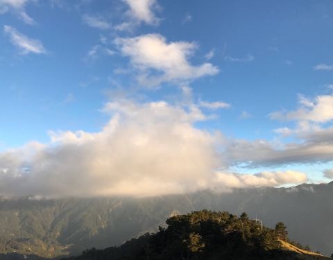 旭日初升的光辉洒在山峦上,山脉轮廓逐渐清晰...玉山、阿里山尽收眼底,武岭是台湾公路的最高点了,一点高原反应也没有,甚是高兴....也许以后..就可以去高海拔的地方了呢……