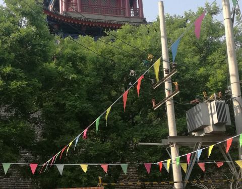 我们是自驾游去的西安,第一今天就去了城墙,开车从这个门下经过的,然后旁边有很多停车位,停下车之后就到城墙上面去玩了,看看这边的风景还挺不错的。