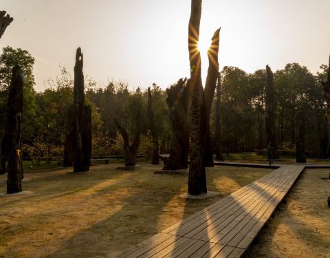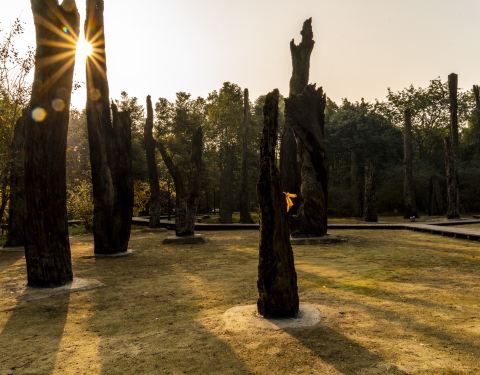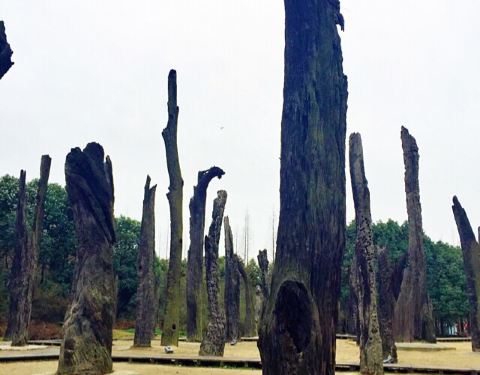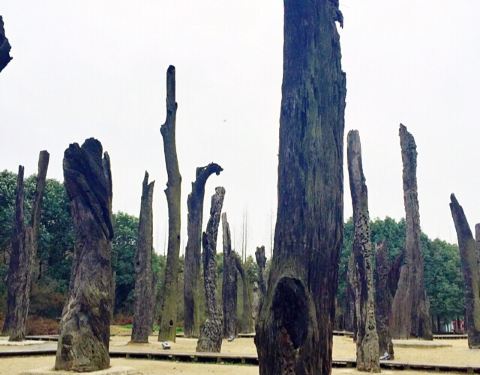 ...木,现在在遗址博物馆内专门开辟一个地方,展示乌木,这些乌木还是象树林一样立在那里,这就是乌木林
