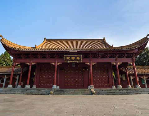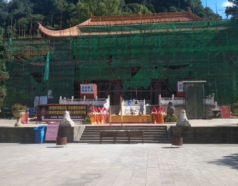 此时拜殿和正殿都正在维修,都被遮盖起来,所以整个陵区景色没上次来那么好看九月十日中午一点多钟,我们五个人从三分石景区出来,在路旁的盘龙瑶寨吃了午饭,稍作休息,因有两位同事从没到过舜帝陵,所以我们陪他们回到舜帝陵景区,重游舜帝陵。舜帝陵是传说中的中华始祖之一舜帝的陵墓,...九月十日中午一点多钟,我们五个人从三分石景区出来,在路旁的盘龙瑶寨吃了午饭,稍作休息,因有两位同事从没到过舜帝陵,所以我们陪他们回到舜帝陵景区,重游舜帝陵。舜帝陵是传说中的中华始祖之一舜帝的陵墓,这里有着厚重的历史文化底蕴,被称为“中华第一陵”。 今年四月三十一日我来过一次,当时湖南经视正在这里准备直播一个滑翔飞行节目,可是由于风向不对,没能按时进行,直到下午三点我们回到家,刚好在电视看到了正在进行的直播。 那天正值五一期间,景区门口的大广场周围彩旗猎猎,游人众多,十分热闹。记得当时我们没买九嶷山风景区的套票,只买了舜帝陵的门票,八十元一张。 今天是教师节,我们只要拿出教师资格证就可以进去。此时已是下午三点多,太阳当空照,游人稀少。里面一条大道,称为神道,处在陵区中轴线上,中轴线上有午门、拜殿、正殿、寝殿,两边有各种配殿和碑廊。此时拜殿和正殿都正在维修,都被遮盖起来,所以整个陵区景色没上次来那么好看。我们只好仔仔细细地参观旁边的钟楼、鼓楼、中华姓氏文化馆,有两个同事还跑去品茶,精挑细选了舜帝玉佩,说是今天最大的收获是请了一尊舜帝回家。 如果说看自然景物,这里自然比不上三分石,但这里的人文景观更胜一筹。幸亏我上次来跟着一位别的游客请的导游,听她讲解,否则我也会如一般游客那样觉得这里没什么看头。看这里就是一个不大的四方形院落,其实这里的文物众多,那些石碑都是来历不凡,这里的古树也是宝啊,还有每一株斑竹都在诉说着娥皇和女英的故事。走马观花般游览这里,一个小时绰绰有余,而我们花了将近两小时。然后急急奔向九嶷山风景区的另一个景点玉琯岩…… 展开