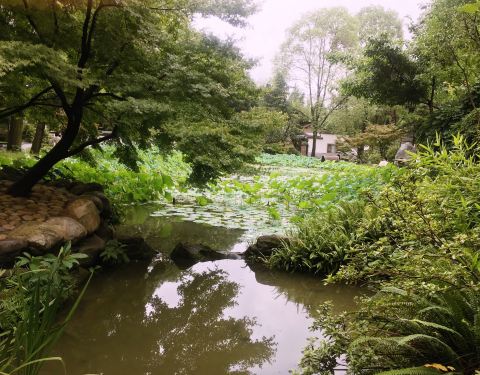 小而精致的公园,雨后的空气特别清新,亭台楼阁,小桥流水,晚夏的残荷也特别有韵味。公园很幽静,散步在其中很享受。