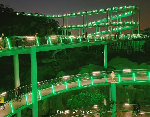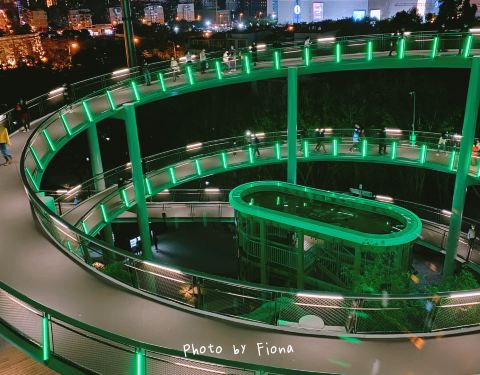 ...道的一個網紅打卡點,果然比較適合晚上來,環形坡路很好走,主要是夜景還挺不錯的,燈光也會不斷變色