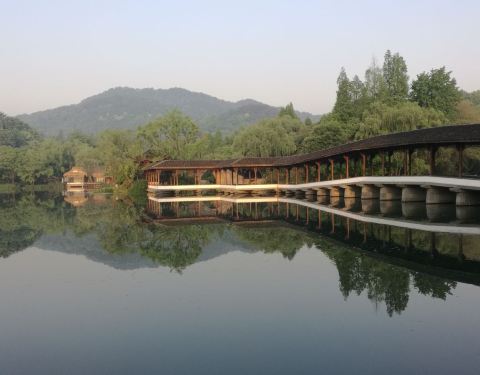 ...中一较大屋宇有一横扁,上书湖畔大学,恍然大悟此处圣地原来就是马云在杭州创建的研讨型大学所在区域为了走翁家山到南高峰的步道,在四月下旬专门去了趟杭州,从南高峰下来见到六通宾馆,就是云台山路。由于天色已近黄昏,我和夫人匆匆把背包放在三台云舍民宿区中的涵轩旅馆,出门穿过三台山马路就看到路边耸一巨...为了走翁家山到南高峰的步道,在四月下旬专门去了趟杭州,从南高峰下来见到六通宾馆,就是云台山路。由于天色已近黄昏,我和夫人匆匆把背包放在三台云舍民宿区中的涵轩旅馆,出门穿过三台山马路就看到路边耸一巨石,上书三台遗迹朱红大字。沿小径寻迹而进,就见有几座殿舍,其中一较大屋宇有一横扁,上书湖畔大学,恍然大悟此处圣地原来就是马云在杭州创建的研讨型大学所在区域。再进入景区,两旁竹编矮篱笆引你曲径通幽,直达一拱桥所连长廊,逶迤曲折把你带到对岸。这条长廊在夕阳照射下倒影迷人,久久不愿离去。湖与西湖相通,湖面较大,湖对面的雪舫和武状元牌楼点缀于绿色之中煞是养眼,沿湖左转能到祈福殿,穿过长廊就能到龙井路,朝前走几步就是杨公堤,西湖国宾馆,郭庄,杭州花铺就在沿线,走到岳庙也就半个小时。由于天色渐暗,在三台遗迹转了近一小时从湖畔大学的巨石边出来回旅馆休息,第二天一早又去观赏了一圈,特记,共享。 展开