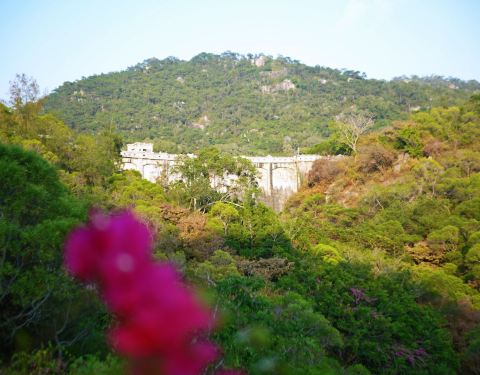 上李水库的动人,在于它将“野趣”与“故事”揉得恰到好处。1924年由华侨黄奕住集资修建的石砌大坝,青灰色砖石被岁月磨得温润,坝顶爬满藤蔓的护栏缝隙里,野菊与三角梅自在生长。站在坝上眺望,狭长的水面如镜面,将五老峰的轮廓、相思树的浓绿与天空的流云全收进水里,偶有白鹭掠过,翅膀划破倒影的瞬间,仿佛时光都跟着轻轻晃动。
