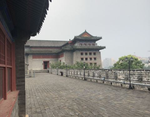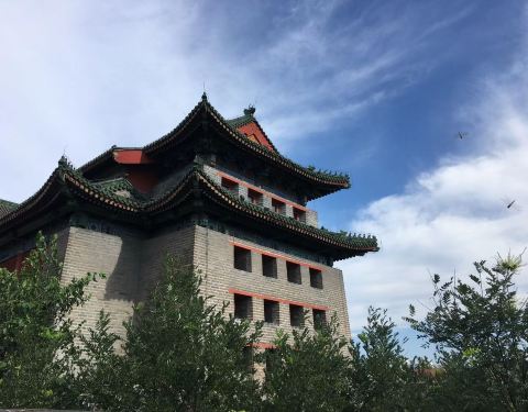 东便门角楼位于明城墙遗址公园最东部,登上城墙,极目远眺,青草顺着宽阔荒芜的古城墙似乎绵延到了天边,远处高楼渺渺,古与今在残缺中交错……… 北京站铁路沿城墙而行,那杂错的碰撞声似乎也敲碎了古墙的记忆,曾经的苦难曾经的辉煌都化为土灰了! 城墙上有后期复原的建筑,才苍茫云天下,远处中国尊空渺依依…… 东便门是北京外城东南端的一座小城门,位于北京城墙东南端角楼旁边,主要由城楼和箭楼组成。东便门于1958年拆除。 明朝嘉靖四十三年(1564年),为了防御蒙古骑兵的骚扰,增强北京城的防卫,保障北京城的安全,修筑了包围南郊一面的外城,在外城的最东端修建了东便门。 关于东便门名称的由来有两种说法: 1、便门,一是便于南北方向的出入,二是工程简便,不是大兴土木。 2、东便门偏居北京城的东侧,并且是内城和外城结合部位。因此,这座城门可因其所处位置,用“偏(piān)”来命名,称为别称“东偏门”。但由于“便”和“偏”的发音相近,时间一长就把“东偏门”读作“东便门”了。 东便门城楼为单层单檐歇山小式,灰筒瓦顶,四面开过木方门,无窗;面阔三间宽11.2米,进深一间深5.5米,高5.2米;其城台正辟过木方门,楼连城台通高12.2米。瓮城为半圆形,东西宽27.5米,南北长15.5米,单层单檐硬山小式,灰筒瓦顶,南背面辟过木方门,东西北三面辟箭窗,每面各二层,弱面每层4孔,东西面每层2孔;面阔三间宽9米,进深一间深4.6米,高4.7米;其城台正中辟门,外侧(北半侧)为拱券顶,内侧(南半侧)为过木方门;楼连城台通高10.5米。 开放时间 8:00-17:00 门票价格:10.0元