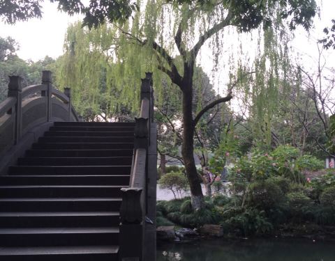 从苏堤进入曲院荷风必经经过的一座桥的,夏日在桥上最好就是欣赏曲院里面满院的荷花了,景色倒是不错的,桥也是连接两个湖的桥梁的。