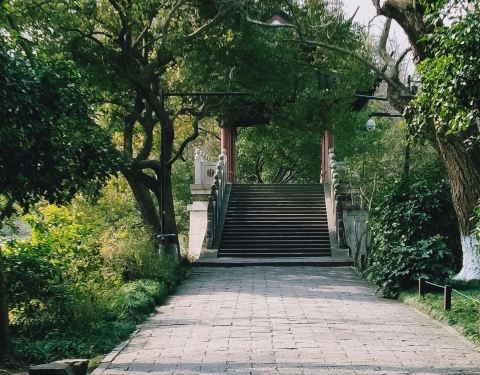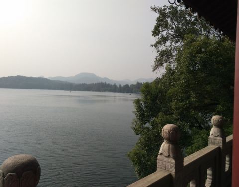 此地景色极佳,可望苏堤及香格里拉饭店及原西泠饭店,亦可望"