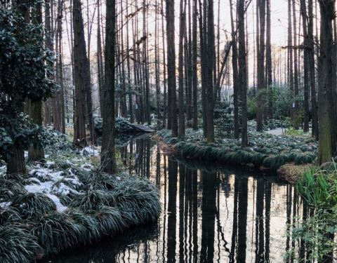 由苏堤北岸下船,谢过船夫,会了钞,原地跳跳暖暖身,向北进发,去踩曲院风荷。 玉带晴虹在曲院风荷内,西湖十六小景她占其一,向东望去的景色雷同,因我去过虎跑,知道大概方位,所以往虎跑方向走了走,为看高杉。 正是夕阳最灿烂的时间,冷湖、高杉、瘦绿、凉红凑着热闹的找落日金光普惠她们~ 可见的落日很短,刚好在合适的时间出现在了合适的地点,好庆幸~