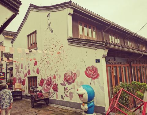 五柳巷历史街区连着五柳芳庭,还有多啦A梦小伙伴。壁画墙很适合凹造型拍照