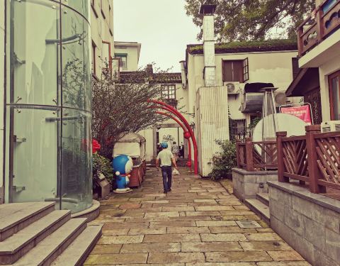 上上次的杭州之旅,来这里还是因为想要吃这里的什么鬼。 无意中却发现市中心的喧嚣里,还有一处这样远离喧嚣的地方。 老街不长,走走5分钟就到尽头了。壁画墙很适合凹造型拍照。 五柳芳庭连着五柳巷历史街区。还有多啦A梦小伙伴。