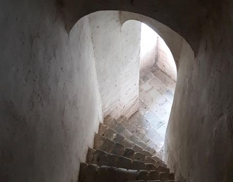 南峰塔,内壁自下而上,凿出足窝,以供登高。