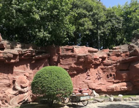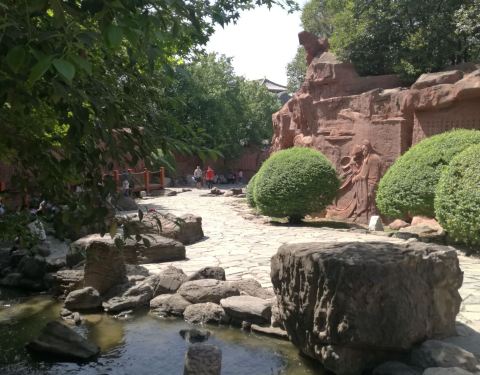 和唐诗峡连在一起,很多雕像就雕刻在唐诗碑文的岩石上。认真看的话,可以看出雕像的人物和下面所刻的唐诗的联系,可见是很用了一番心思的。