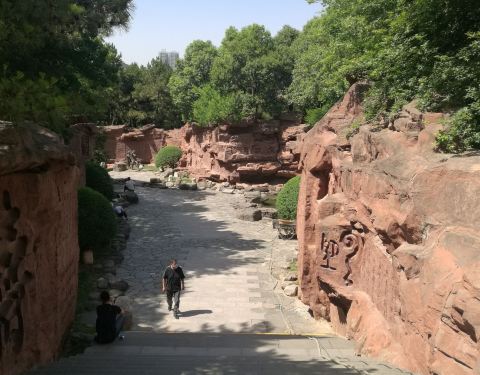 和唐诗峡连在一起,很多雕像就雕刻在唐诗碑文的岩石上