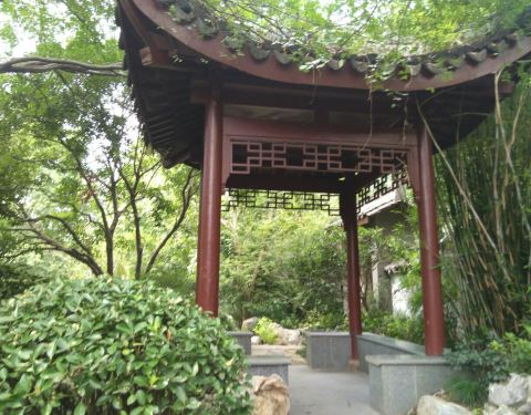 勾山樵舍位于杭州河坊街与南山路交叉口,就在柳浪闻莺正门对面,是一个被太湖石环绕的假山,上面有一个亭子