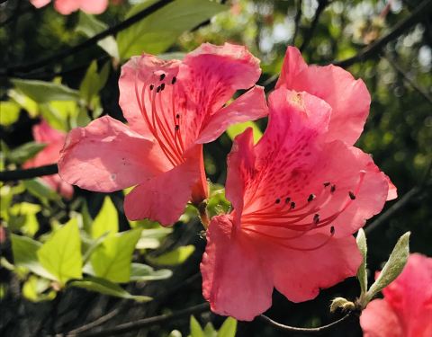 四月底去的,听说那边有“百亩杜鹃”。抱着轻松赏花的心情,抵达了余杭百丈镇,从那边上山。在山脚下,当地村民一直在推销搭他们的黄鱼车上山,五十块一位,不然“要走三小时”。这么黑!当然拒绝啊!三小时?肯定是诓人的! 事实证明,他们是对的……沿开车的大路上去,真的要走几小时!光“走”也罢,一路几乎都是坡度很大的坡道,是用“爬”的啊!尽管沿途绿意盎然,风景宜人,但全程爬完,人都散架了! 更坑的是,传说中的杜鹃花呢?就在山顶看到了一丢丢。后来刷别的群发现,赏花不能走大路,别人都是在山间小路上徜徉花海的,呵呵!