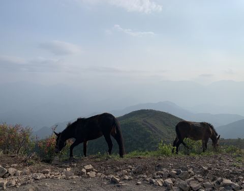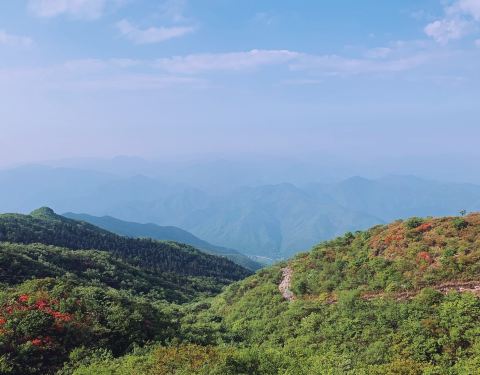 ...山路,只有山坡,必须在竹林,灌木丛中穿越,手脚并用,山顶风景还行,每年杜鹃花开的季节会比较漂亮