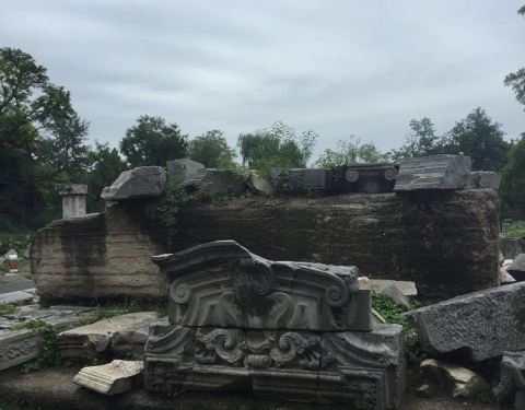 这个经历过几天几夜大火的地方只有这里的西洋遗址区域还可以让你感觉这里是曾经的大花园,散落的巨大岩石,各色浮雕,也只有当时的皇家有这个实力,也正是石质的材料才留下了些许的痕迹。