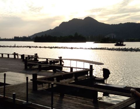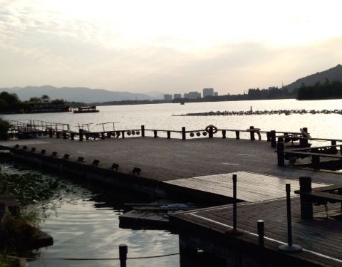 也可以乘游览车,游览车分三条线路,可以从岸上走马观花看湘湖。湖山广场外的马路上有公交车站