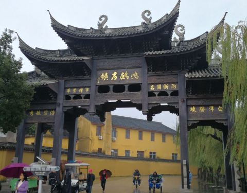 在鸣鹤古镇入口,紧挨金仙禅寺,远山傍水,很美。