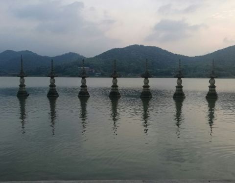 白洋湖环绕鸣鹤古镇,湖水澄碧,三年环山,湖畔坐落千年古寺——金仙禅寺,湖边七座神塔坐落其中,整...白洋湖环绕鸣鹤古镇,湖水澄碧,三年环山,湖畔坐落千年古寺——金仙禅寺,湖边七座神塔坐落其中,整体似一幅画,给人一种山水的清秀静谧之感。