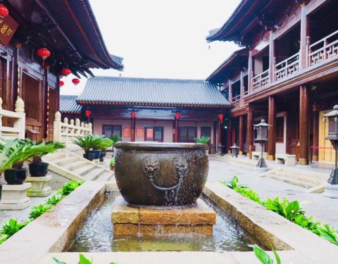 在广富林遗址内,很经典的仿唐建筑,此禅寺也是为纪念流传松江民间的知也禅师施医救人之善举而复建恢复重建,后直到2013年5月才全面竣工,不同于一般寺庙黄色的外墙,这里是红色为主。寺内设有山门殿、钟楼、鼓楼、祖师殿、五方文殊殿、大雄宝殿、观音殿、地藏殿、五观堂、般若丈室、内观阁等殿堂设施。清幽,修筑很有特色,门口的喷泉很有看头。也有素斋供应,味道还不错的说。