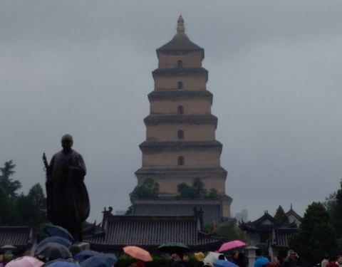 玄奘法师就是鼎鼎大名的唐僧,他的铜像就伫立在大雁塔南广场,他威严又和蔼的注视着前方,目光坚毅专注,像是表露自己一往无前的决心…