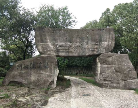 河姆渡在余姚江上游的北岸,很值得一去,是免费的。经过游览,你会了解到中华文明的起源地不止于黄河流域,长江流域绝对也是发源地之一。另外,河姆渡遗迹公园内完整再现了原始人的生存状态,很有意思的。
