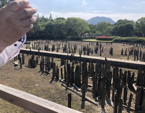 约几百米后便到了,见到好多树桩,广播解说,方知是先人造房子用的,还有7000年的木井