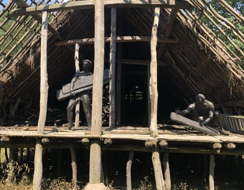 河姆渡遗址公园,有一片是真正的遗址,有一片是遗址再现,恢复了河姆渡时期的房屋原貌,值得参观游览