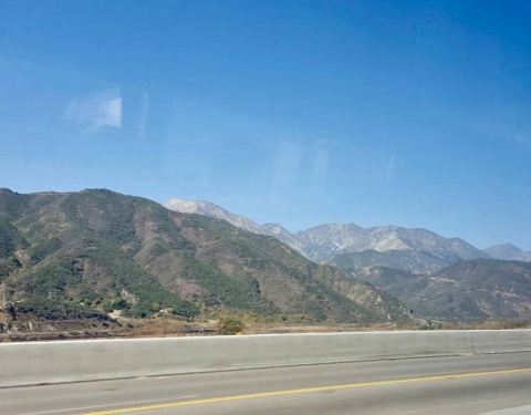 翻过了圣盖博山就离开了大洛杉矶,这个山的东边就进入沙漠地区。听说旧金山也要经过此山脉,山中有一条横穿西岸的铁路线,19世纪期间,很多广东的华工被“卖猪仔”来到美国,建立了这条铁路。