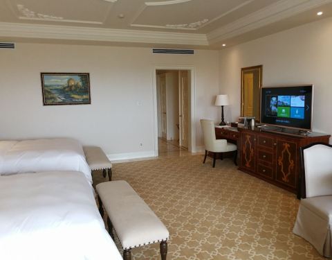 南京溧水区卧龙湖小镇的温德姆至尊豪庭酒店6月才开业,欧式装潢考究奢华,房间超大,queen size bed,卫生间超大,双面盆,绝对是家庭度假好地方,特别适合睡觉。卧龙湖水景挺美,提供以玩水为主的水文化,比如游艇游船、温泉汗蒸、美容SPA、果园采摘、儿童天地等,很适合亲子游、情侣游。酒店吃的一般,周边好吃的也不多,要跑出去几公里才能找到美食,建议各位自驾。附近有S7地铁轻轨,可在群力站或卧龙湖站下来打车过来。