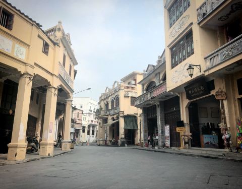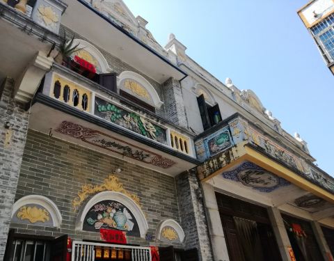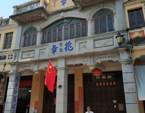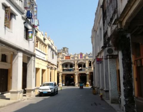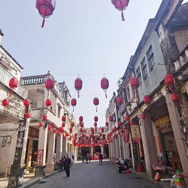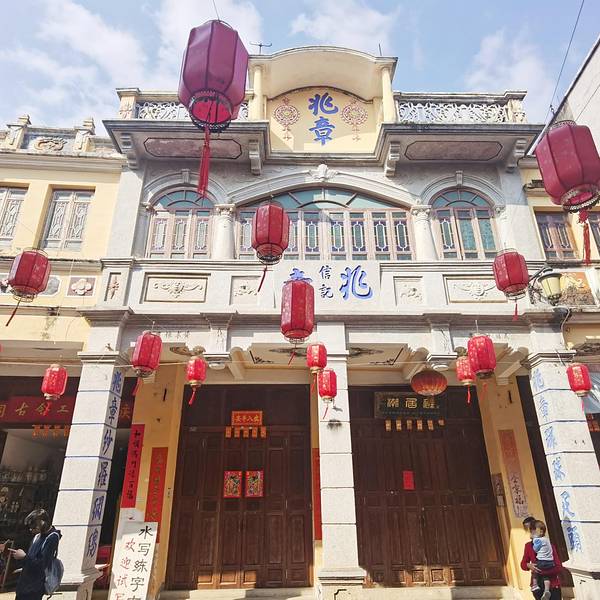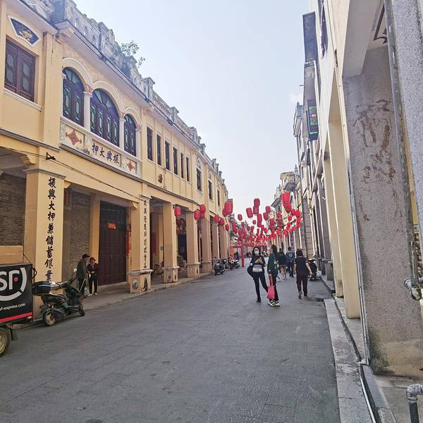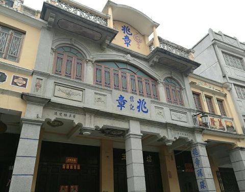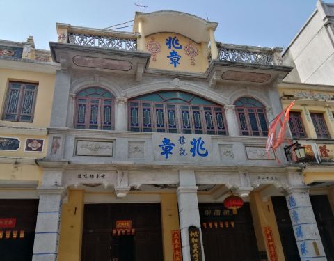 另外,比较老牌的温泉度假景区御温泉也在这里。古街不收门票,停车也不用钱。看到这里,也让人感慨万千回程的路上并没有想象的那么多车,很快就到了珠海。在视频网站上看到附近有处清朝老街,很多人推荐,临时决定到这里转转。老街不长斗门,地处南海之滨,历史悠久、商业发达。现在的斗门区属珠海管辖,所在区域以...回程的路上并没有想象的那么多车,很快就到了珠海。在视频网站上看到附近有处清朝老街,很多人推荐,临时决定到这里转转。老街不长斗门,地处南海之滨,历史悠久、商业发达。现在的斗门区属珠海管辖,所在区域以前都是新会和中山的地界。清朝古街的名字,容易让人产生误解,其实,斗门的这条古街只是成型于清末,而目前呈现在我们眼前的,是1932年重修后的样子,称民国古街可能更为准确,或者干脆就叫斗门老街。兆章楼这条老街并不长,只有500多米,但街道两旁的建筑保存完好,未遭受过太多破坏,门楣上的招牌和门旁边的对联,大都清晰可辨,这一点非常难得,可以让我们了解当时人们的生活状态。老街挂满了红灯笼街道的改造工作始于1928年,1932年完成。设计师是加拿大传教士,同时也是建筑师嘉理慰,他当时就住在斗门。所以,我们现在看到的建筑带有很多西洋元素,这正是民国那个年代的建筑特点。和中山的孙文西路步行街相比,显然这里的古建更密集,关键是保存的非常好。斗门骑楼也是这里的建筑风格之一,在广西梧州和广州上下九,都有比较出名的骑楼街。它的特点就是一层的商铺门口设有走廊,并且整个街道的走廊都是连在一起的,可以为顾客遮风挡雨。大宁堂无论是屋顶、门楣、窗框、房顶,阳光护栏等,每一栋洋楼都进行了精心的装饰,即使历经了这么多年的风雨,依然能看出当年的用心。街道拐角随着时代的变迁,古街早已没落,虽然招牌还在那里,但生意早就停掉了。如今,只能从一个个招牌中,想象当年的繁华。售卖特长的店铺现在这里成了景区,只有到了节假日的时候,才会热闹一阵子,平日里则是冷冷清清。而店铺里也依然有生意,不过已经变成了售买当地小吃、土特产、手工艺品等旅游产品。看到这里,也让人感慨万千。老街一角从西部沿海高速斗门出口下高速,转宋城大道,然后再拐入一个小路就能到达。街口的环境有点糟糕,但有停车场,路边也有停车位。古街不收门票,停车也不用钱。宋城大道旁有金台寺,还有正在建设的宋城,所以马路名字就叫宋城大道。另外,比较老牌的温泉度假景区御温泉也在这里。离此不远,有个接霞庄,同样值得一看。古街一角 展开