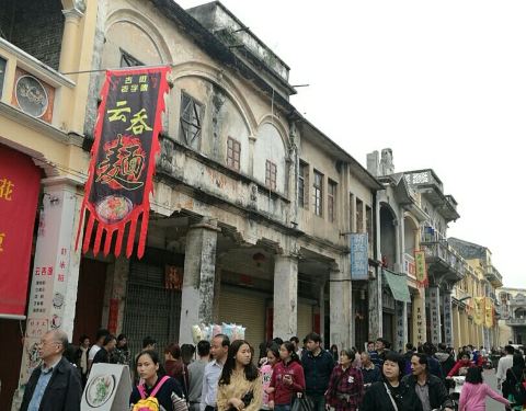 此街大多数为中西建筑风格组合的独特骑楼,有布匹店、百货店、米铺、中药店等,体现了昔日这里的繁华...位于斗门镇斗门墟的这条清朝时期建的古街,为1840年鸦片战争之后才建立起来的,全长大概500多米,此街大多数为中西建筑风格组合的独特骑楼,有布匹店、百货店、米铺、中药店等,体现了昔日这里的繁华景象,现在...位于斗门镇斗门墟的这条清朝时期建的古街,为1840年鸦片战争之后才建立起来的,全长大概500多米,此街大多数为中西建筑风格组合的独特骑楼,有布匹店、百货店、米铺、中药店等,体现了昔日这里的繁华景象,现在此街大多成了个体商户店,卖土特产的、工艺品、还有当地的特色美食“鸭扎包”及其砵仔糕,另外还有茶餐厅、粉面店等,我们是在黄金周的第三日到的,幸好来这里的游客不算多,街内很多店铺也没有开门营业,忧哉悠哉地走完这条街只需45分钟左右便可走完,走累了便可找间喜欢的餐馆坐下来补充能量。 展开