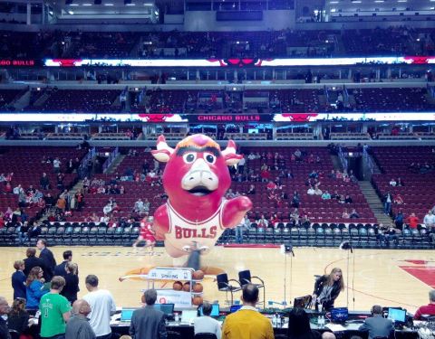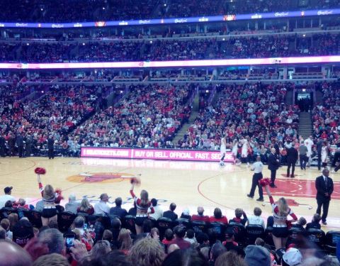 去年去现场看了公牛对步行者的比赛。球赛的内容很丰富,除了比赛本身,每次暂停和休息时都能完出新花样。一次是拉拉队来表演,一次是小朋友和公牛吉祥物对阵来偷懒,一次是小狗表演节目,还有观察现场做节目。