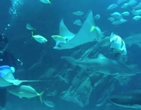 还有各类水族箱,超大水族箱还能观看到沙丁鱼风暴。