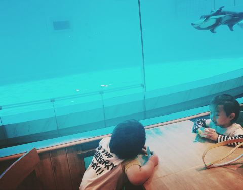 吃饭建议在海洋世界负一楼餐厅吃,餐厅和表演馆隔着玻璃墙,坐在餐厅里还能看到海豚戏水。 展开