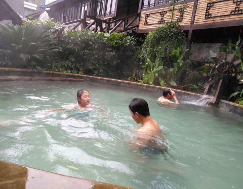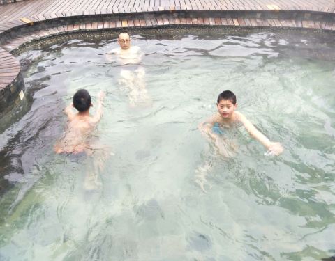 多年没来这里了,环境比十几年前好多了,增加了户外池子。虽然天上下着雨,气温只有十二度左右,但“冰火两重天”的感觉也很是不错,丝毫不影响我们的心情!
