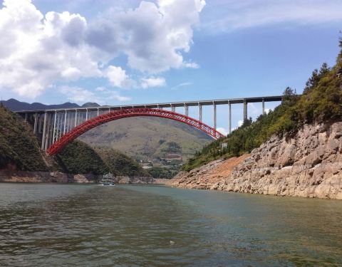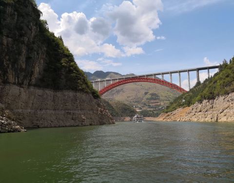 龙门峡是小三峡中的第一个峡,也是最雄伟的一座峡,入口处是一座龙门大桥,它就像一道彩虹横跨峡谷两岸