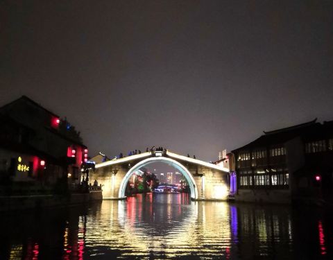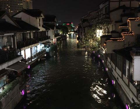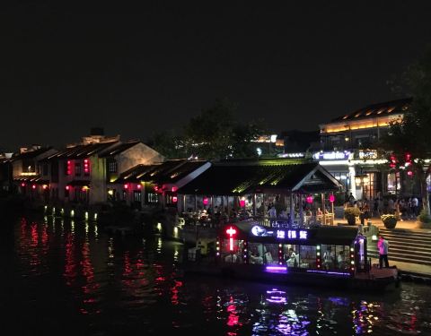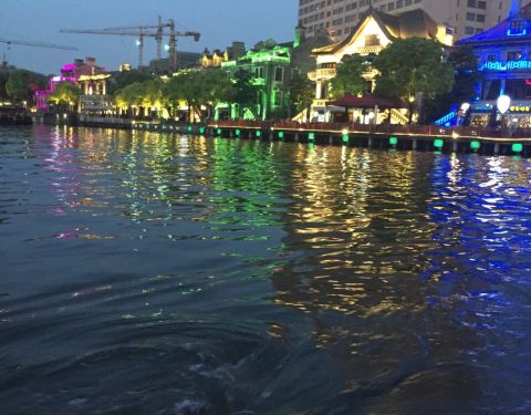 运河两岸风景旖丽,值得一游。我们是傍晚去的,两岸红灯初亮,灯红酒绿,跨塘桥一带热闹非凡。颇有些南京秦淮河的氛围。如果说秦淮河是大家闺秀的话,这里就是小家碧玉的感觉。如果白天去,或许会是另一番感觉。