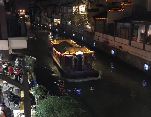选了在南禅寺的码头上船,晚上6:30这班船既可以看到白天的景观也可以看到运河的夜景,在无锡是值得一去的。整个游程大约一个小时,运河两边很多餐厅。