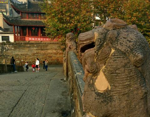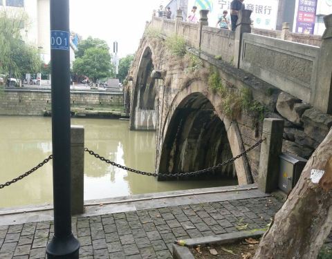 说是始建于北宋,现存石桥是雍正年间修的,坚固高耸,桥头是舜水楼,坐于古城墙上,余姚城墙早已拆除,之剩楼下这一点了。