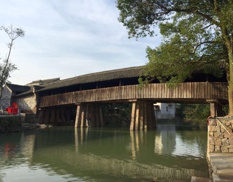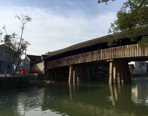 广济桥在当地这个地区还是很出名的,跟广东的广济桥同名,奉化这座桥是一座廊桥桥上有屋顶可以躲雨遮...